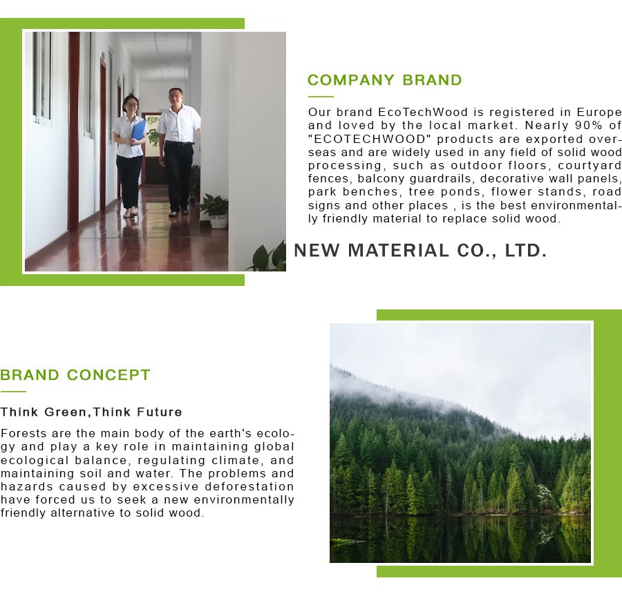Ecotechwood muab qhov zoo tshaj plaws ntawm cov ntoo sib xyaw decking uas tiv thaiv cov ntoo los ntawm kev ya raws thiab kab puas tsuaj.Yog li tsis muaj rotting lossis splintering.Cov ntoo tiv thaiv cov yas los ntawm UV puas thiab muab rau koj zoo li ntuj tsim.High Strength thiab rigidity, skidproof, abrasion resistance. , tiv thaiv kab mob, thiab lwm yam.Nws tuaj yeem siv dav rau txhua yam ntawm thaj chaw sab nraud, xws li vaj, sam thiaj, txoj kev hauv tsev, chaw ua si, dej hiav txwv, pas dej da dej thiab lwm yam.